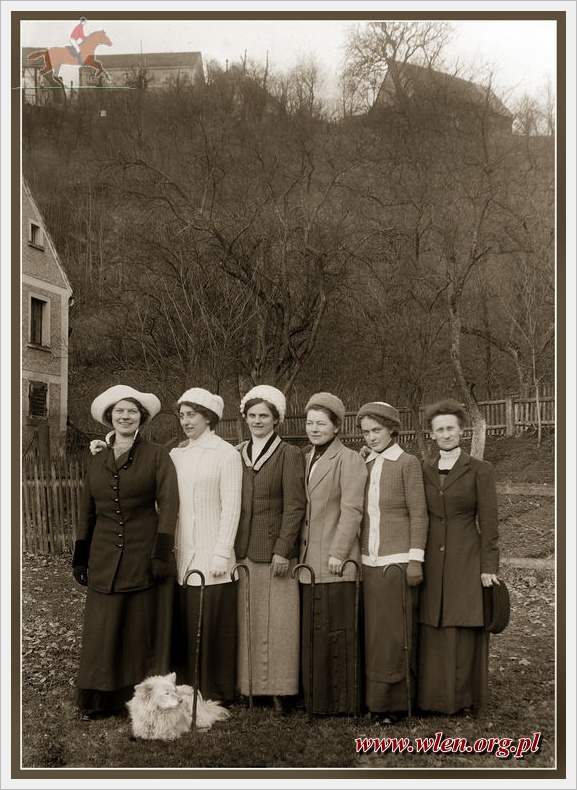 Na jednej z fotografii widocznych jest kilka kobiet w ubiorach przypominających zakonne habity, być może są to elżbietanki zarządzające wówczas Zakładem Wodoleczniczym we Wleniu?
